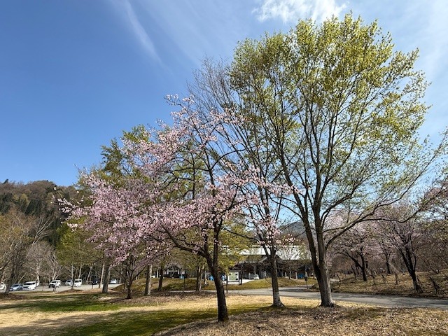 「遊学の森森林交流館」の桜は現在満開ですが、「田屋の一本桜」は5月3日が満開予測となっています(※記事公開時の状況に合わせて調整してください)。今年はゴールデンウィーク中も、狂い咲く桜の光景が見られることでしょう。